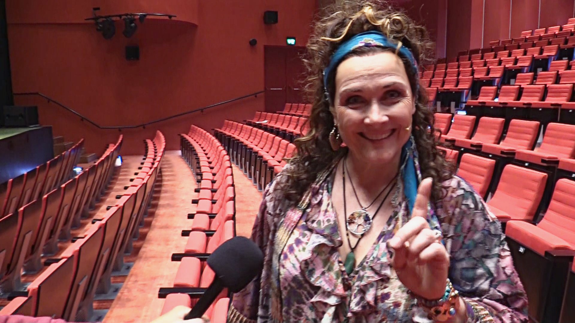 Marleen van der Loo wisselt de rol van Flora in Doe Maar De Nederpop Musical af met Brigitte Heitzer. Frans P. Wollrabe praat met Marleen op haar eigen première.