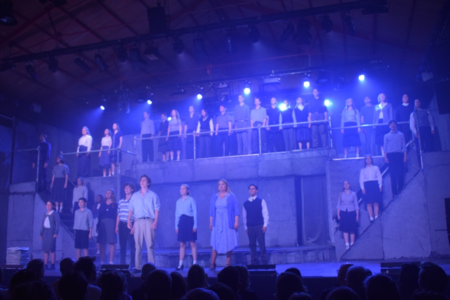 We zien Arend en zijn broer Klaus bij de kennismaking van de studentenvereniging van de Humboldt Universiteit. Lenard springt daar meteen in het oog, door deze eerstejaars (schachten) af te snauwen. Logisch dat ze denken dat hij de praeses is, maar dat blijkt hij niet te zijn. Dat is Johanna, die een stuk socialer in het leven staat. Johanna is wel de vriendin van Lenard. Het studentenritueel is dan ook een stuk minder agressief als dat wat we kennen uit Soldaat van Oranje (waardoor ik de hele voorstelling lang ook geen sympathie meer voor die praeses kan opbrengen). Ze moeten een (al dan niet twee weken oude) vis kussen. (Ja, ook hier schieten de gedachten even naar een andere musical; in Come From Away is het een iconische scène). Het stuk voelt overigens nooit als een kopie, of een samenraapsel. De studentenvereniging is een plaats van studie en ontspanning, maar de politiek blijft niet lang buiten de deur. Het is Lenard die propagandaposters ophangt. Uit opportunisme, je kunt maar beter bij de sterke partij horen, zeker als je gesteld bent op macht. Hij trekt zelfs het uniform aan van de partij, waar hij status heeft verworven door zijn eigen ouders aan te geven.