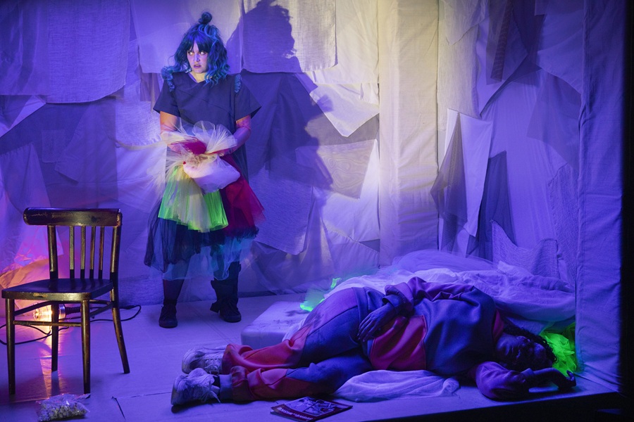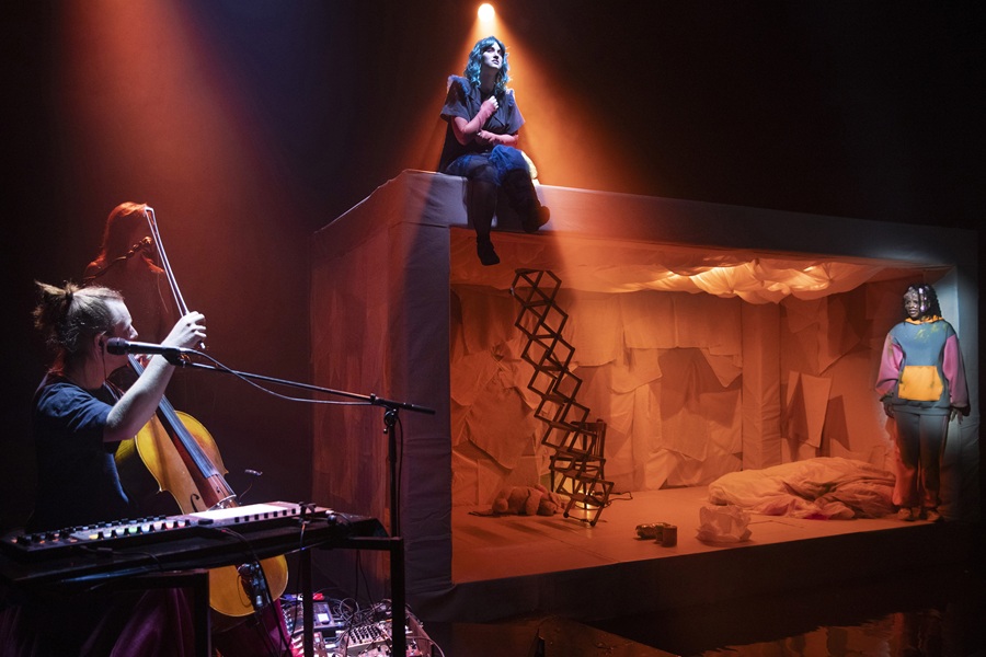 Muzikaal is de voorstelling ook heel interessant. De eenmansbegeleiding bestaat vooral uit cello-muziek maar met een loopstation en soms wat synthesizertoevoeging van een beat is het allesbehalve eentonig. De stemmen van de drie dames die het stuk opvoeren kleuren ook mooi met elkaar. Het decor oogt eenvoudig, net als de kostuums, al zitten er zeker een paar verrassingen in.