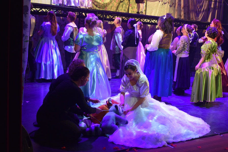 Hoewel de grote lijn van het sprookje zeker te herkennen is, is het zeker geen rechttoe-rechtaan vertelling. Even lijkt het zelfs of hét moment, het achtergelaten schoeisel (van Venetiaans glas) niet gaat komen. Het geeft een flink aantal leden van de cast de gelegenheid te stralen. Lizzy Gijsbers is heerlijk als de nare stiefzus Charlotte, en pakt ons volledig in tijdens het eerder genoemde Stepsister’s Lament. Linda Schrik en Youri Lavrijsen hebben een heerlijk ongemakkelijke interactie als Gabriëlle en Jean-Michel. Veerle van Erve is een aimabele Ella, en zingt en speelt Do (die de rol in de Efteling speelde) er aan alle kanten uit. Nikie van Wees weet hoe je een slechterik groots moet spelen, terwijl Geert Versteeg als prins vooral zijn zachte kant laat zien. Ingrid de Bekker pakt als fee haar momenten. De rest van de cast ondersteunt de vertelling mooi, waarbij de poppen van de wasbeer en de vos zeker niet onvermeld mogen blijven. De enige die af en toe een beetje uit de bocht vliegt is de rookmachine, die het zicht op de voorste rijen soms wel heel beperkt maakt.