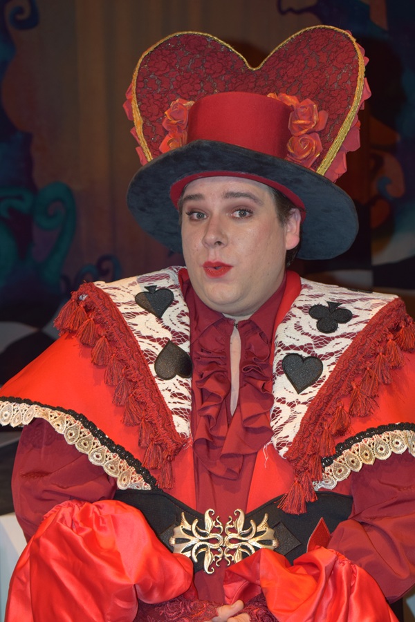 Haar vijand, de Hartenkoningin, is in de uitvoering van Sjors Arts, geestig en toch ook wel beangstigend, al ligt de balans toch vooral op het eerste. Dat zorgt er bijvoorbeeld voor dat er in de zaal wat kinderen zijn, die niet naar haar luisteren als zij de opdracht krijgen stil te zijn. Al is het voor de cast hard werken om alle personages te spelen, speelsheid voert de boventoon. De moeder, die zich achter een grote hoed verschuilt, en als ze van richting verandert, ook haar hoed meedraait. Het is maar een klein grapje, waar er veel van inzitten. Sowieso is de voorstelling leuk voor jong en oud, en niet alleen maar vanwege eventueel jeugdsentiment. En wat ook heel prettig is, het wordt nergens ordinair.