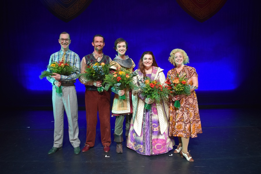 Dit is zeker niet hun enige verdienste. De schapen zijn ontwapenend naïef, en daardoor ook geestig. Het maakt dat je zelfs medelijden krijgt als de eerste vakantieganger zijn eindbestemming nadert. Aan het hof is vooral de egocentrische koningin (Marike Folles), die zich meer zorgen maakt over een verloren broche dan over een mensoffer, die de aandacht trekt. Maar ook de koning (Marijn Brouwers) en de weinig geestige hofnar (Christiaan Koetsier) acteren sterk. Snelverkledingen zijn schering en inslag, want ze vertolken ook nog andere rollen. Thijmen Staps en Fleur Renes weten je mee te nemen in hun grote avontuur als ‘geliefden’ Joris en Rosalie. Geen musical zonder liedjes, en in deze voorstelling zijn ze van de hand van René Merkelbach, die er een hoop variatie in aanbracht. Ze worden ook prima vertolkt.