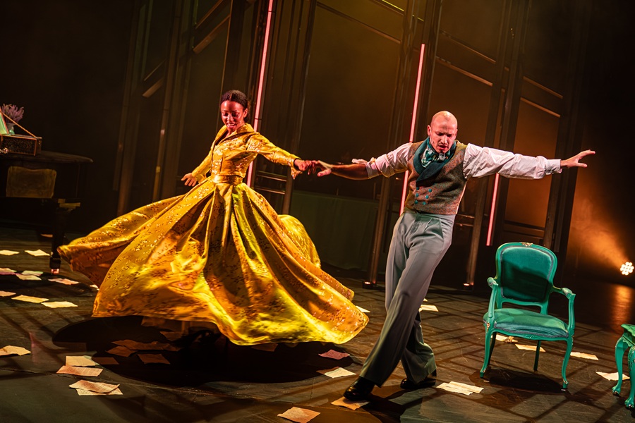 De cast is uitstekend. Sandrine van Handenhove zingt als Emma Bovary prachtig, en speelt haar ongenoegen en verlangens mooi. Thomas Cammaert is prachtig als de liefdevolle, terughoudende, ontwapenende dokter Bovary. Als handelaar L’heureux is hij juist die gladde verkoper, die voor sommigen onweerstaanbaar is. Michiel De Meyer speelt onder meer de twee liefdespartners van Emma, elk met hun eigen karakter. Het zijn mooie vertolkingen. De songs die Sam Verhoeven componeerde liggen goed in het gehoor, en zijn duidelijk herkenbaar. Het contrast met de beats die we soms te horen krijgen is aanzienlijk. Het zijn waarschijnlijk de kloppingen die door het gif zijn ontstaan, maar het voelt geforceerd, zeker in combinatie met een bal aan het eind 19e eeuw. Misschien is het het mannelijke perspectief van uw recensent, maar een ander probleem is dat Emma Bovary niet sympathiek overkomt, en dan is de eerste akte een wel erg lange zit vol voornamelijk zelfbeklag. Pas in de tweede akte, als het perspectief wijzigt naar de sympathieke Charles, die dankzij brieven alles te weten komt wat hij niet zag en niet wilde weten, wordt de voorstelling interessanter.