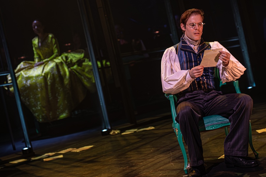 De komische musical Blind Date – in Nederland terecht al heel succesvol -had eigenlijk op de kalender moeten staan, maar door uitstel ervan (naar oktober dit jaar) ontstond een gat in de programmering. Dus werd snel deze Madame Bovary musical geschreven, in nagenoeg alles het volstrekte tegenovergestelde. Het resultaat is een voorstelling, die in het begin qua structuur een platgetreden pad volgt: een persoon, op het randje van de dood, kijkt terug op het leven. In dit geval is dat Emma Bovary zelf. Het buisje groene drank, dat ze inneemt, is geen grenadine, maar arsenicum, dat haar langzaam de dood in jaagt.
