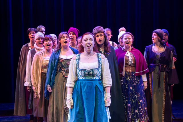 De kostuums zien er goed uit. Op de achterwand worden groot beelden geprojecteerd, die als bladzijden van een boek worden omgeslagen. De decorstukken ogen als huisvlijt, maar maken wel duidelijk waar we ons bevinden. De muziek wordt degelijk, live gespeeld.