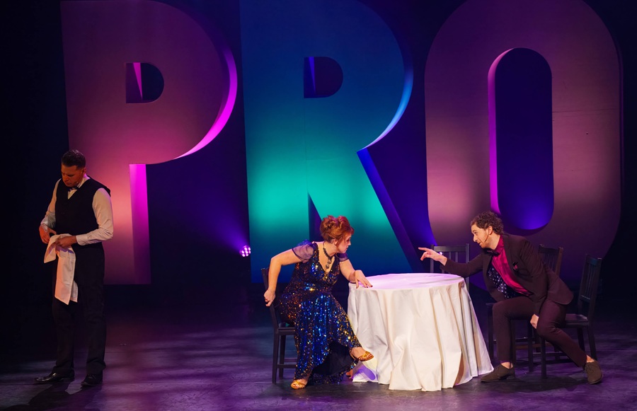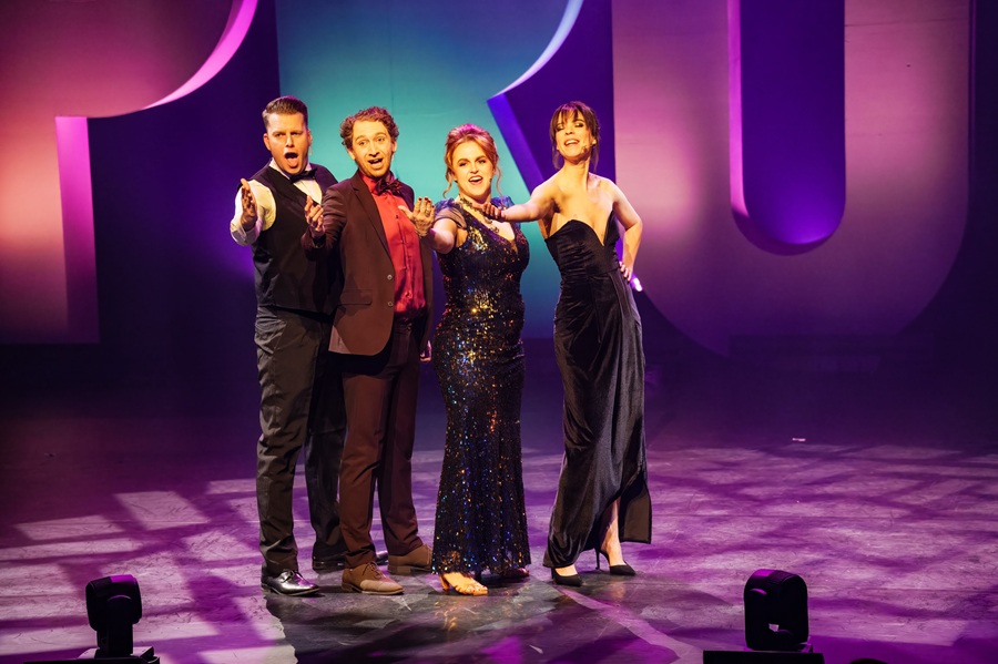Een goed live-orkest probeer ik altijd wel te benoemen, maar vaak moeten die het met de laatste veren doen. Laat ik daar nu eens mee beginnen, want deze voorstelling is muzikaal genieten van de eerste tot de laatste noot. De vormgeving van de show is eenvoudig gehouden: PROM staat de hele voorstelling in grote pastelkleurige letters midden op het podium. De rekwisieten hebben dezelfde kleuren, zijn vrij grof gevormd en worden spaarzaam gebruikt. Het zorgt, met uitstekende belichting, voor snelle scènewisselingen, en voor het verhaal blijkt meer ook niet nodig. Alleen voor de finale wordt echt uitgepakt. Waar het hal-gevoel van de zaal in het licht prominent aanwezig is, is dit verdwenen als het licht is gedoofd, en wordt je meegesleurd in het boeiende verhaal. Soms is een scène mooi intiem, dan weer knalt een gigantisch ensemble al dansend van het podium.