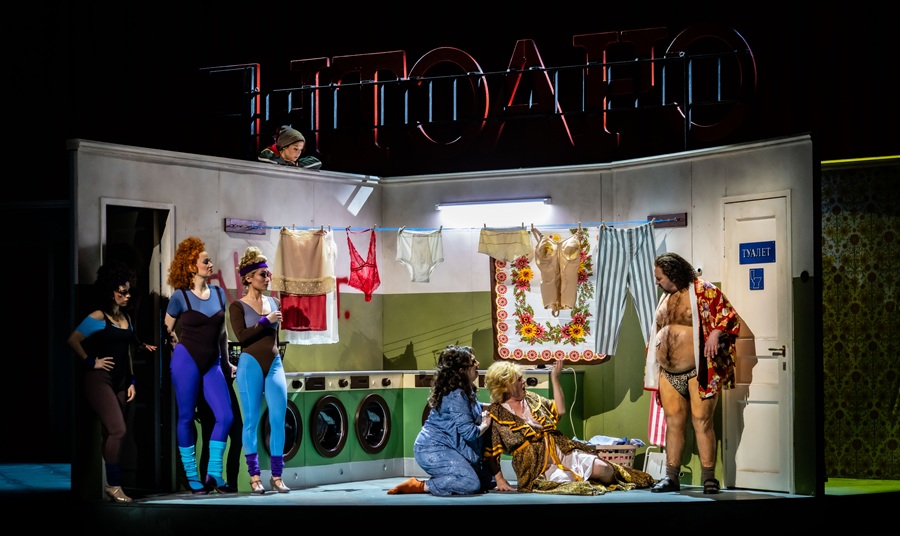 Hoewel het verhaal zich in 1991 afspeelt, en gebaseerd is op een stuk van meer dan zestig jaar eerder, voelt de thematiek actueler dan ook. De zucht om aandacht, schaamteloze sociale media, ze zijn natuurlijk heel herkenbaar. Als theaterstuk voelt de voorstelling vooral heel vol: qua personages, maar ook qua mengeling van stijlen. Het vergt alle aandacht om de muziek en het verhaal te volgen. Gelukkig is er boventiteling in zowel het Engels en het Nederlands. Niet alleen voor de Russische stukken, maar ook omdat niet alles goed te verstaan is. Waar het spel van de cast prima in orde is, vallen sommige stemmen toch wat weg in de muziek of de zang van medespelers.