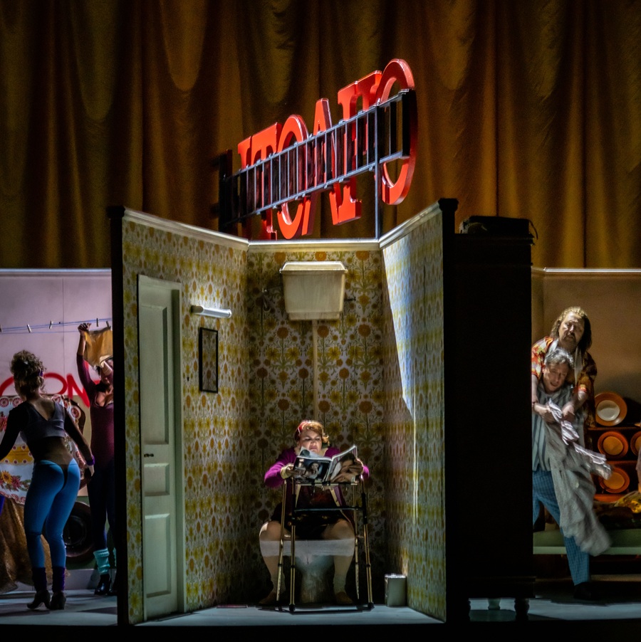Het leven in een kommunalka kunnen we ons nauwelijks voorstellen. Het is een woongemeenschap waarin alleenstaanden en gezinnen één eigen slaapkamer hebben en de rest van de ruimtes moeten delen. De studentenflat die ik deelde met 18 anderen komt een beetje in de buurt, maar dan had ik geen partner, en zeker geen schoonmoeder in mijn bed. Toch is precies dit het leven van Semyon in de nieuwe voorstelling van de Nederlandse Reisopera, To Die For, de zich afspeelt in Rusland in de jaren negentig. Semyon is werkloos, geeft hier gemakkelijk zijn vrouw de schuld van. “Er moet toch meer zijn.” Als hij de gedachte van zelfmoord uitspreekt, suggereert zijn buurman om tuba te leren spelen. Met in zijn achterhoofd hier een kapitaal mee te verdienen door te spelen op uitvaarten, gaat hij voortvarend aan de slag. Heel snel in zijn leerboek wordt hij geacht een piano te kopen, en komt het oorspronkelijke plan weer aan de oppervlakte. Dit wordt opgepikt door Victor Vane, een populaire televisiepresentator, die hem uitnodigt dit live op televisie te doen. Het aanbod trekt ook allerlei vreemde figuren aan die mee willen liften op de aandacht, en zelfs de medebewoners gaan hierin mee. Op één jongen na, die een luisterend oor biedt bij het gejammer en de twijfels van Semyon, al blijkt er een heel goede reden voor zijn gebrek aan tegengas.