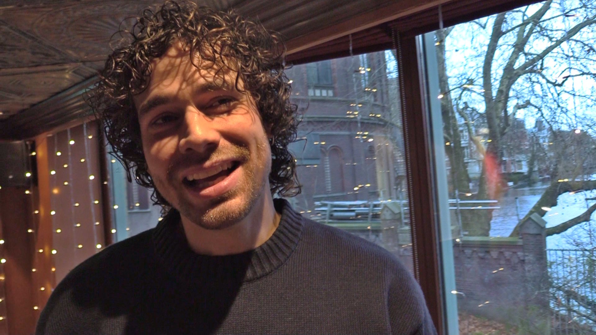De cast van We Will Rock You (2026) presenteert zich. Lucas Hamming, Brecht van Arnhem, Magtel de Laat praten met Frans P. Wollrabe.