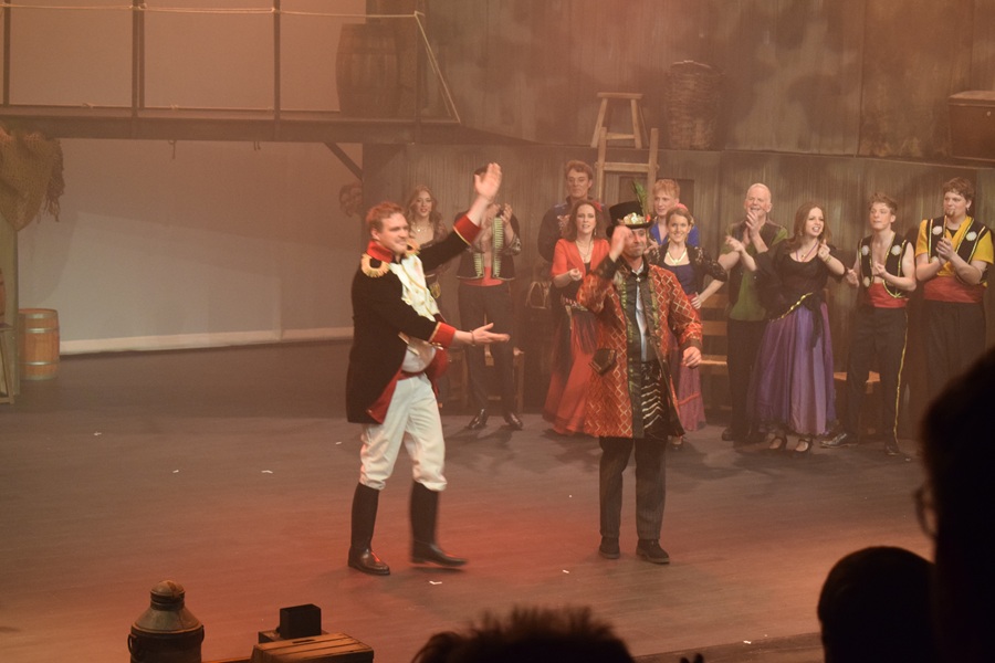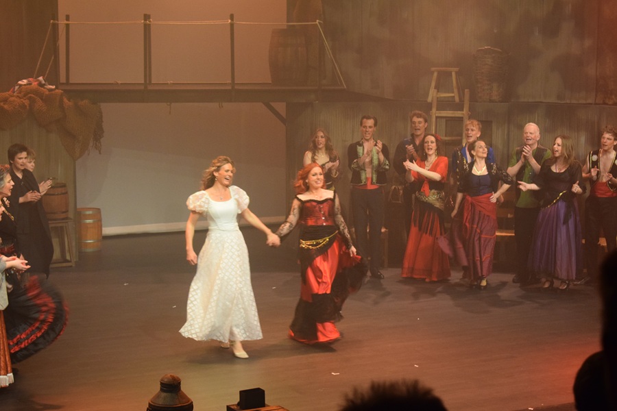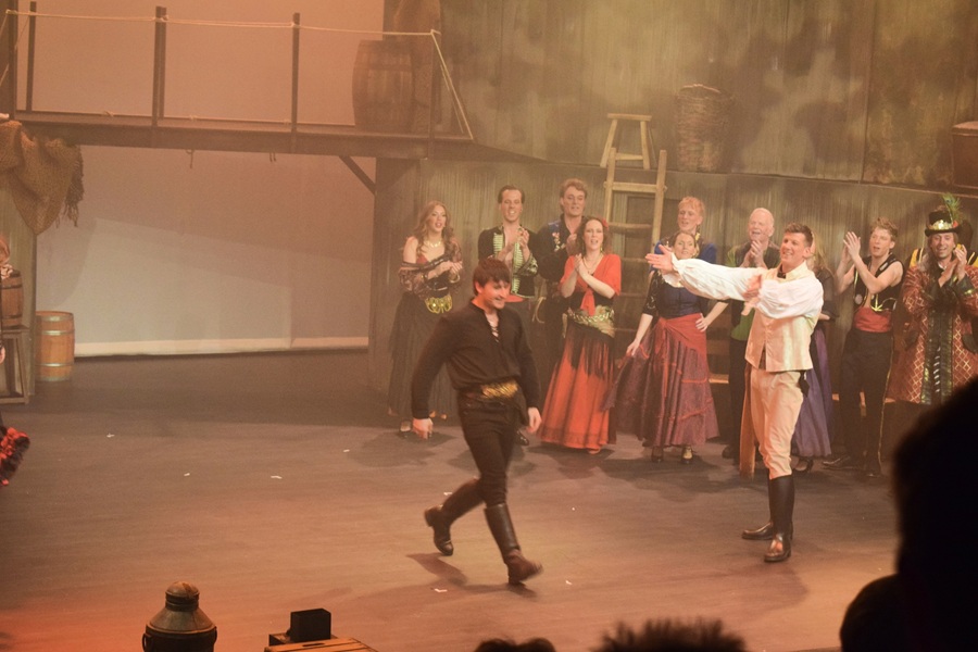 Het vertrouwen wordt niet beschaamd: de voorstelling is, voor een amateurvoorstelling, werkelijk sensationeel te noemen. Te beginnen met een uitstekend drietal in de hoofdrollen aan de goede kant. Alle hoofdrollen zijn dubbel bezet, dus wie nog gaat kijken, zou ook andere mensen kunnen zien spelen. Koen Stekelenburg speelt Zorro deze middag, en doet het zeer overtuigend. Hij maakt van het onbekende “Hope” (en de korte reprise ervan) een van de hoogtepunten van de voorstelling. Bravoure en kwetsbaarheid komen mooi in hem samen. De chemie met Marijn van Amstel is als Luisa is duidelijk aanwezig. Zij is ook een genot om naar te luisteren, en overtuigt in haar teleurstelling in de slappe (versie van) Diego, en in haar bewondering voor zijn Zorro-kant. Inez is een brok energie, verleidelijk en gevaarlijk. Een stevig rechtvaardigheidsgevoel, maar ook geboren voor gevaar. Rianne Haaijema spat van het podium als de vuurfonteinen die we een paar keer te zien krijgen en is net zo vurig. Wat een temperament. Je snapt wel dat de wat sullige en slappe Garcia voor haar valt. Dit geeft Yorick Smit de ruimte om te laten zien is dat hij meer is dan de ja-knikkende voetveeg van Ramon (Arjan Sluijs). In ieder geval in woord…